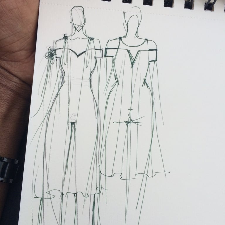 Description: Hand-drawn fashion sketches of your custom designs, providing a visual representation of your garment before creation.